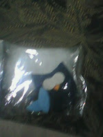 7. Dah sampai separuh jahit tue,leh la berenti rehat jap...hehehe..tak de la.Teruskan jugak dengan memasukkan fiber kat dalam badan owl tue.Saya guna lidi untuk bagi dia masuk ke dalam dan bagi gemuk sikit owl tue.Fiber tue benda yang warna putih kat dalam plastik yang ada kat dalam pack tue.Isi la ikut suka korang..nak banyak ke,sikit ke...Kemudian teruskan menjahit sampai tertutup bahagian atas kepala owl tue..dah siap nanti jadi macam gambar kat bawah keychain owl korang tue..